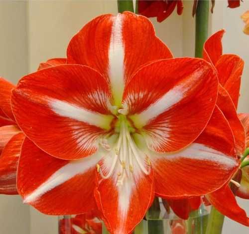 Этот сорт цветет в июне и июле, радуя глаз красивыми крупными цветками красного цвета с белой полосой по центру лепестка. Для успешного выращивания амариллиса рекомендуется выбирать место с хорошим освещением и дренированными богатыми почвами. Частота полива должна быть умеренной, а также необходимо обеспечить растению удобрения для активного роста и цветения.