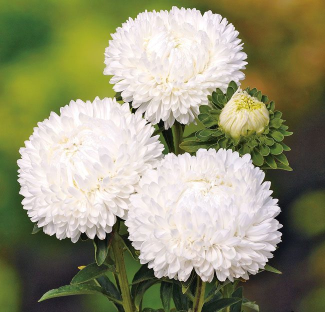 Семена астры "Белоснежка" высевают для оформления садового участка великолепными кустами с крупными белоснежными цветами. Высота культуры достигает около 65-75 см. В ширину кустик раскидывается на 40 см. Густомахровые соцветия диаметром 9-12 см радуют глаз с июня до августа. Высевают семена астры "Белоснежка" на рассаду в марте. Пикируют, когда появляется первая пара настоящих листочков. В мае растения пересаживают на постоянное место. Участок выбирают с легкой почвой, защищенный от ветра, солнечный или частично освещенный. Полив необходим лишь в период сильной засухи.