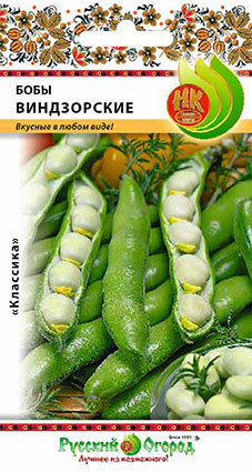 Семена бобов "Виндзорские" —  это сорт, который лучше других переносит весенние заморозки и отлично произрастает в северных районах. Период от всходов до созревания семян составляет 110-130 дней. Высота растений 80-120 см. Бобы расширяются к основанию, гладкие, длиной 9-12 см, с мясистыми створками. В каждом бобе по 2-3 семени. Они крупные, плоские, зеленовато-белой окраски, при хранении буреют. Семена бобов "Виндзорские" очень вкусные, калорийные, содержат много витаминов. Предназначены для употребления в свежем виде или для кулинарной обработки.