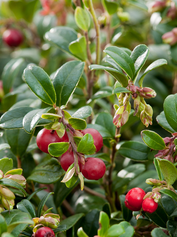 Брусника Miss Cherry - это удивительное растение, которое поразит вас своей красотой и плодовитостью. Ее темно-зеленые листья весной превращаются в оранжево-красные осенью, создавая неповторимый колорит вашего сада. Цветки белого цвета расцветают в мае-июне, наполняя воздух нежным ароматом.