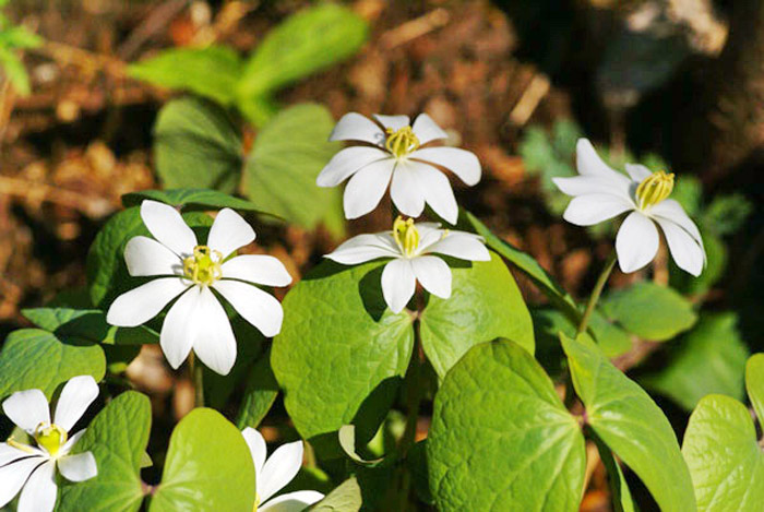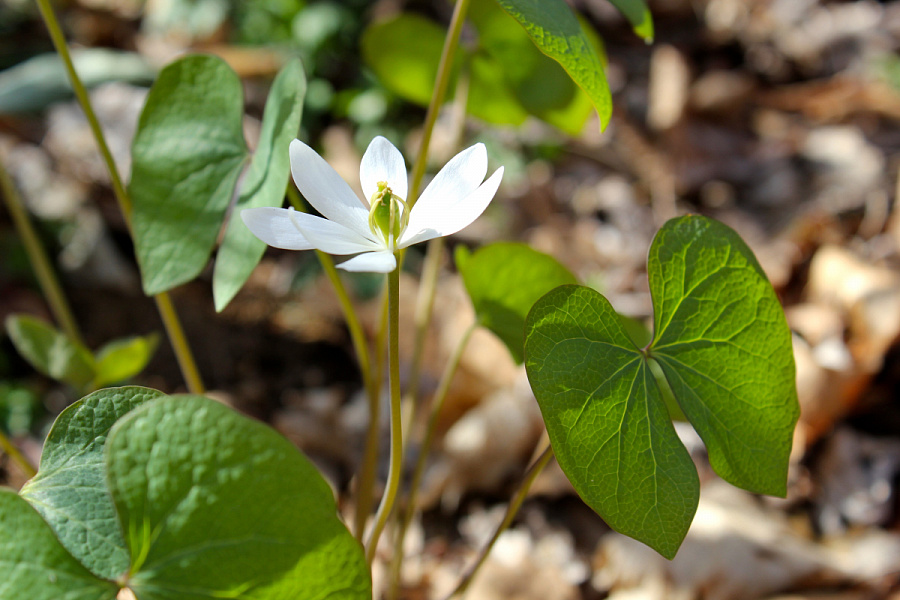 Рассада Джефферсонии двулистной прекрасна не только своими необычайно нежными белыми цветочками, но и формой листочков, которые еще долго после цветения будут украшать палисадник. На месте опавших цветов появляются аккуратные коробочки с семенами.