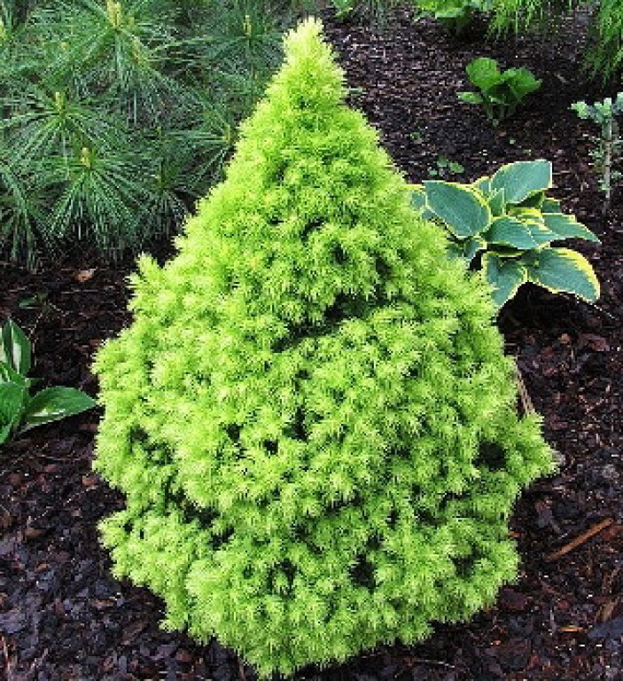 Саженцы Ели канадской Коника Майголд (Conica Maigold) – является хвойным деревом с декоративной формой конуса. Вырастает в высоту до 100-300 сантиметров и диаметром 120 сантиметров. Молодое растение с золотисто-желтой хвоей, которое со временем обретает темно-зеленый окрас. Хвоя вырастает до 5-10 миллиметров.