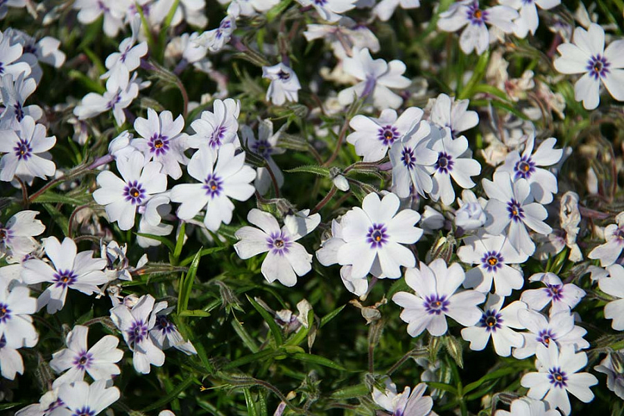 Флокс сорта Bavaria (Бавариа) благодаря необычному внешнему виду часто используется для оформления альпинариев, миксбордеров и рабаток. Этот сорт обладает стелющимися побегами с густой листвой. С наступлением весны растение обильно покрывается цветами. Они белые с сиреневым центром. Достигают 2,5 см в диаметре и имеют легкий едва уловимый, но приятный аромат. Взрослое растение не превышает 10 см в высоту и цветет в мае и июне. В августе иногда происходит повторное цветение. Флокс хорошо переносит морозы и будет отлично чувствовать себя в песчаной влажной почве с хорошим дренажем. Растение выглядит намного интереснее при посадке на солнечный участок.