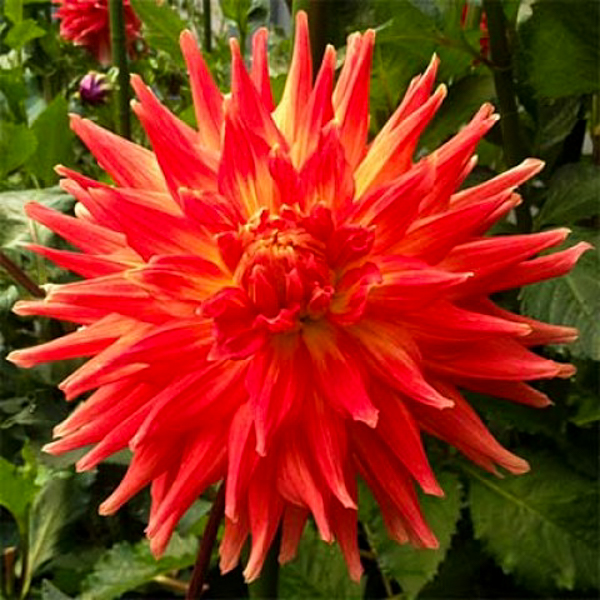 Георгина полукактусовая "Марта" - это великолепное растение, которое поразит вас своей красотой и изысканностью. Ее очень крупные цветки, окрашенные в разные оттенки от желтого до кораллово-красного, создадут неповторимый акцент в вашем саду или огороде. Высота растения может достигать до 100 см, что делает его заметным и привлекательным элементом ландшафта.