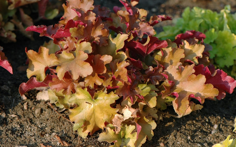 Рассада Гейхеры Крем-Брюле (Creme Brulee) создаст уникальное цветовое решение для вашего сада, обязательно посадите его в этом сезоне. Весной листья оранжевого цвета, а летом – красного. Оборотная сторона листа темная. В высоту куст достигает 35-40 сантиметров, расцветает в июле и августе кремовыми цветами. Подобно другим представителям рода Heuchera, Крем- Брюле предпочитает полутень, не требует частой минеральной подкормки и нуждается в хорошем дренаже. Семена многолетника сеют в марте-апреле в стерильный грунт, предварительно смешав их с песком. Для хорошего прорастания важно хорошее освещение.
