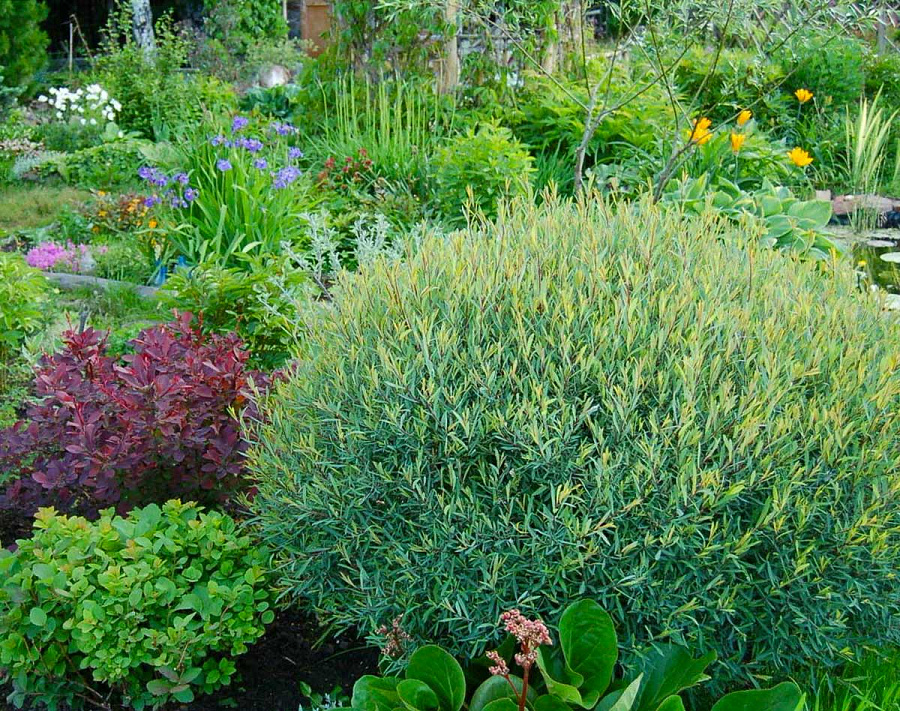 Ива пурпурная Нана используется для укрепления береговых линий за счет сильно развитой корневой системы, прекрасна для создания живых изгородей и различных фигур на небольших участках.