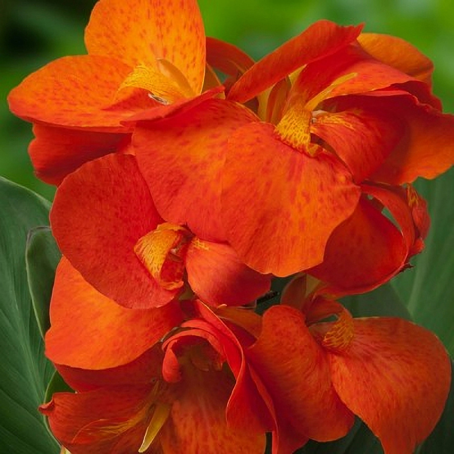 Луковицы канны горшечной Хеппи Кело (Happy Cleo Canna) – превращаются в небольшие комнатные растения, высотой от 40 до 65 сантиметров. В классическом варианте цветы ярко оранжевого цвета с мелким крапом поражают своей красотой. Декоративное растение хорошо приживается и разрастается в домашних условиях. Листья слегка заостренные, овально-продолговатой формы зеленые с пурпурно-бронзовым оттенком. Цветы асимметричные, без запаха, могут быть красного, белого, розового или желтого оттенка. Канны Happy Cleo любят солнечный свет, не переносят холода и сквозняков. В летнее время хорошо переносят высаживания на террасы и цветники под открытым небом.