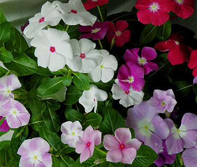 Семена катарантуса "Розовый, смесь окрасок" высевают в рассадные ящики в феврале. Первые всходы появляются при температуре +20 градусов через две недели. На постоянное место рассаду пересаживают в начале — середине мая. Участок выбирают солнечный или частично затененный с удобренной почвой. Высота взрослых растений достигает всего 30-35 см. Стебли тонкие, прямостоячие, густо покрыты овальными листочками насыщенно-зеленого оттенка, украшенными белой полосой. Цветочки появляются в июле. Они очень красивые, окрашены в белоснежный, розовый, сиреневый и малиновый цвет.