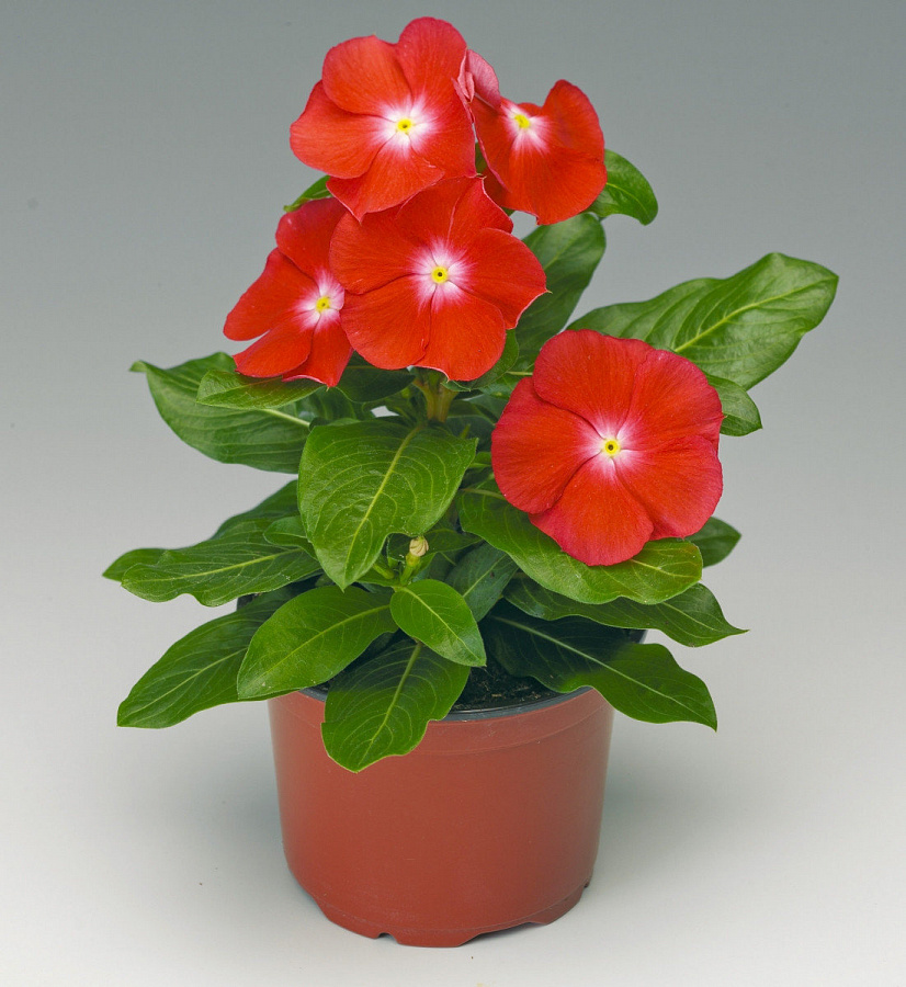 Катарантус Sunstorm Scarlet with Eye - это великолепное растение, которое поразит вас своей красотой и изысканностью. Его стебель прочный и устойчивый, достигает высоты 20-25 см, что делает его идеальным для одиночных посадок. Листья этого растения имеют интересную форму и насыщенный зеленый цвет, что придает ему особый шарм.