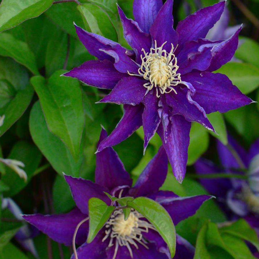 Саженцы клематиса гибридного Хакуоокан (Hakuookan) предпочитают защищенные от ветров и сквозняков, хорошо освещенные места, с умеренно влажной и плодородной почвой, легкой по механическому составу.   Цветет клематис гибридный Хакуоокан (Hakuookan) фиолетовыми, звездообразными, полумахровыми цветками, дважды за сезон. Первое цветение приходится на май-июнь, второе на август.  Растет умерено, побеги способны лазать на высоту до 200-300 см.  Используется для вертикального озеленения садовых конструкций и естественных опор, таких как беседки, арки, различные ограждения, деревья и кустарники. Подходит для выращивания в контейнере и для декорирования террас, балконов и лоджий.