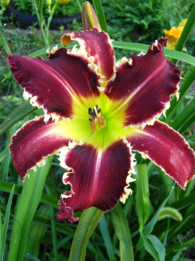 Рассада лилейника Эйт Майлс Хай (Eight Miles High) отличается своими насыщенными крупными цветами, способными украсить и придать изюминку любому саду. Цветы растения темно-красного оттенка с практически черной сердцевиной, а по краю лепестков проходит светлая кайма. Цветок также отличается своими каскадно расположенными лепестками. Высота взрослого растения достигает 65 – 75 см, а размеры цветов очень внушительные и порой доходят до 20 см. Они появляются с июля по август. Лилейник цветет обильно и долго, не капризный в отношении условий разведения и растет на удобренной почве с периодическим внесением перегноя.