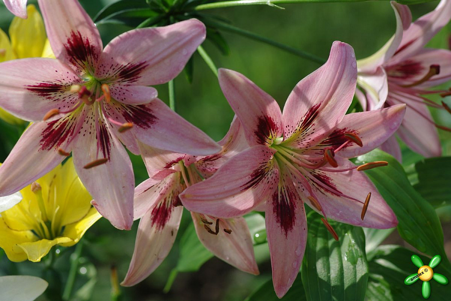 Окраска цветка : розовая с бордовым пятном в центре лепестка