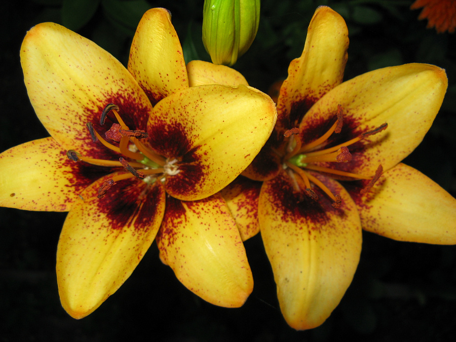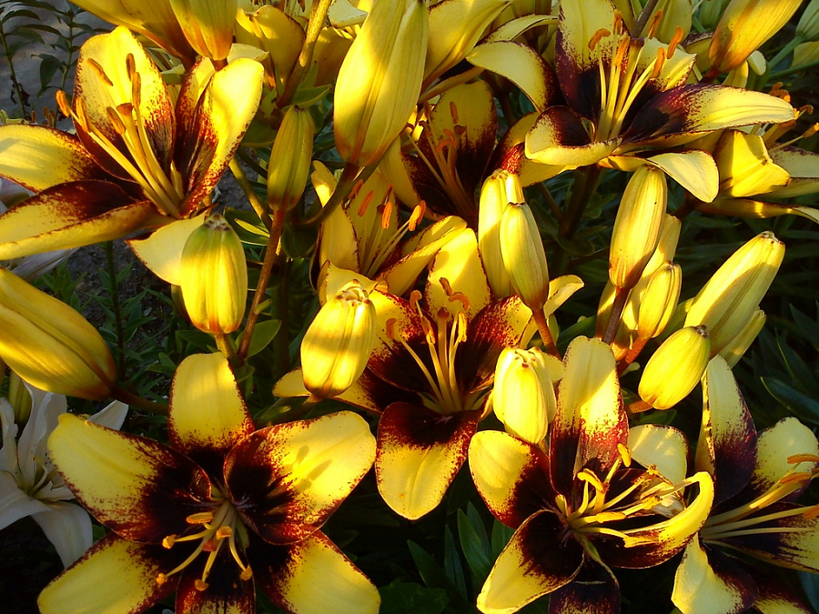 Луковицы лилии Bumblebee высаживают на солнечных местах, в удобренную, хорошо дренированную почву. Глубина посадки примерно 15-20 см. Это очень интересный и эффектный сорт, который поражает необычной расцветкой. Окрас лилии Bumblebee контрастный, цвет от насыщенно желтого плавно переходит в ярко-бордовый. По краям нежных лепестков присутствует небольшая каемка из густых точечек. Диаметр цветка при роспуске достигает 12-15 см. Высота стебля около 110 см. Он прочный, покрыт глянцевыми темно-зелеными листьями. Аромат у сорта очень яркий, как и расцветка.