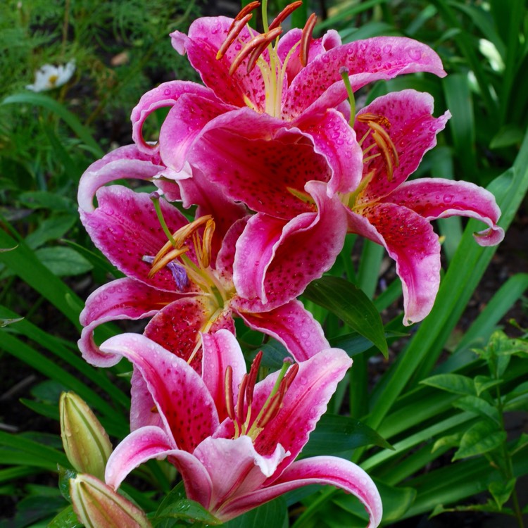 Лилия восточная "Карнавал" - это настоящее шоу в вашем саду! Это растение поражает своими крупными цветками, окрашенными в розовые оттенки с яркими красно-розовыми полосами и темно-красными крапинками. Широкие лепестки с белой каймой создают неповторимый вид, который будет радовать глаза каждого, кто заглянет в ваш сад.