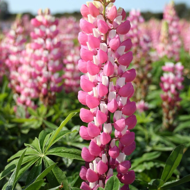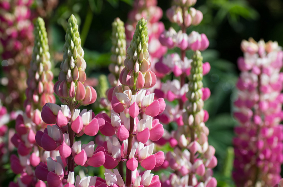 Семена люпина сорта Чателайн порадуют садоводов красивым цветением и простым уходом. В июне на растениях высотой около 120 см появляются пирамидально-колосовидные соцветия, состоящие из небольших цветков двойной розово-белой окраски. Семена люпина можно использовать для оформления различных садовых элементов: