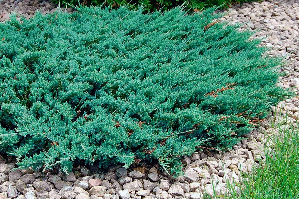 Саженцы можжевельника горизонтального — создадут отличный дизайн сада в любое время года. Можжевельник имеет характерную ему распростёртую форму, прижатую к земле, максимальной высоты достигает около метра. Используется для украшения внутренних дворов, в декоративном озеленении парков, скверов. Растёт очень медленно – всего по 0,5 см в год. Растения тяжело переживают пересадку, поэтому к посадке крупномеров нужно тщательно подготовить почву и соблюдать технологию. Растение хорошо переносит перепады температур, но требует регулярной поливки. Для придания формы дизайнеры нередко стригут кусты.