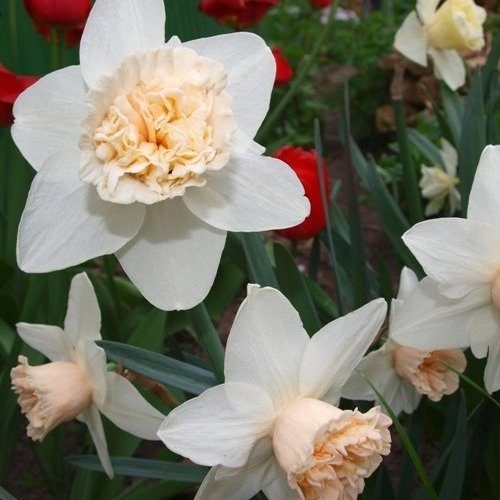 Луковицы нарциссов Рози Клоуд (Rosy Cloud) отличное для ваших участков приобретение. Они помогут вам создать красивый и яркий пейзаж в период с апреля по май. Нарцисс этот цветет шикарным цветком нежного розового цвета, полным и махровым, с коронкой того же цвета. Диаметр его 5-7 сантиметров. При открытии цветет почти три недели, источая тонкий нежный аромат весны. Хорош цветок как в срезке, так и на клумбе самостоятельными посадками или в комбинациях с сиреневыми гиацинтами, тюльпанами. Нарцисс в уходе неприхотлив: