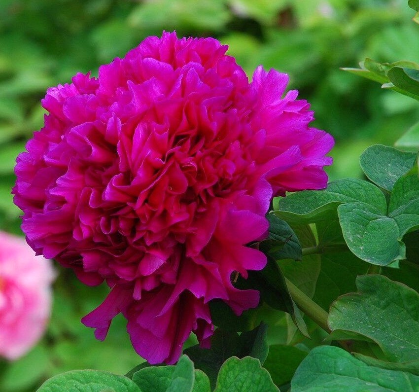 Саженцы пиона древовидного Garnet-red Light on the Desk (Пинг Ши Янь) Классический китайский сорт отличается яркими, слегка душистыми фиолетовыми шарообразными цветами в форме короны с оттенками фуксии и розовыми глазками на концах лепестков нежный, приятный аромат. Высокий, сильный кустарник. Позднее цветение. Растения, принадлежащие к редкому сорту, имеют корни с фиолетовой внутренней частью. Этот цветущий кустарник в зрелом возрасте представляет собой захватывающее зрелище, заслуживающее особого расположения в саду. Длинные стебли с темно зелеными, тонкими листьями и крепкими ветвями. Древовидный пион открывает всю свою красоту, распуская пышные бутоны. Их лепестки удивляют нежностью и тонкостью, а также привлекают взгляд необычной окраской. Древовидные пионы обладает не сильным, но приятным и нежным ароматом. В отличие от травянистого пиона стебли такого растения в осеннее время не увядают, а с каждым годом разрастаются все больше, и со временем кустик приобретает полушаровидную форму. Характерные особенности растения: