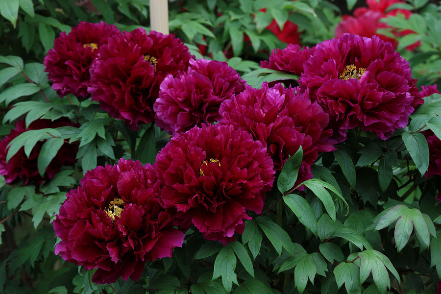 Пион древовидный гранатовый браслет - это изысканное растение с уникальным стволом, который придает ему особый шарм. Размеры этого пиона великолепны - он способен украсить любой уголок вашего сада своими красивыми цветами. Листья пиона древовидного гранатового браслета имеют необычную форму и насыщенный зеленый цвет, что делает его еще более привлекательным.