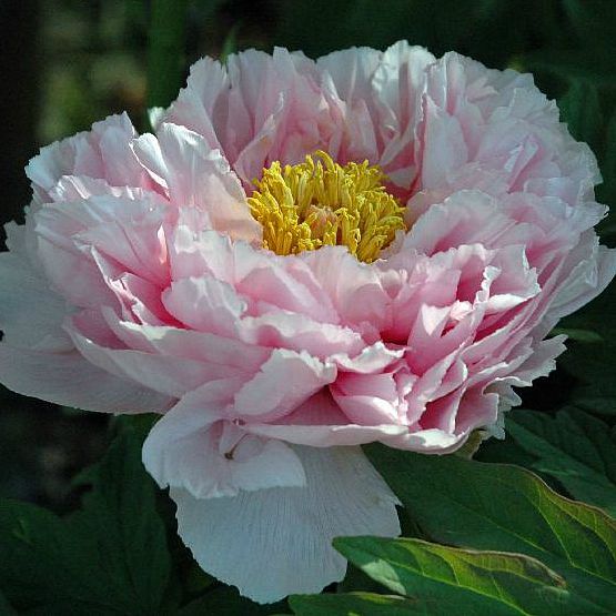 Саженцы пиона древовидного Розовая пудра (Paeonia Suffruticosa) отличаются необычными, похожими на цветки лотоса соцветиями. Кусты раскидистые, высокорослые, высота стеблей достигает 1,2 метров. Зелень эффектно смотрится даже после того, как бутоны отцветают. Лучше всего пионы смотрятся в одиночных посадках. Высаживать рекомендуется на солнечных участках. Лепестки нежного розового оттенка по краям практически белые, а в середине – с бордовыми вкраплениями. У сорта крупная сердцевина с большим количеством желтых тычинок. Соцветия крупные, диаметром до 15 сантиметров.