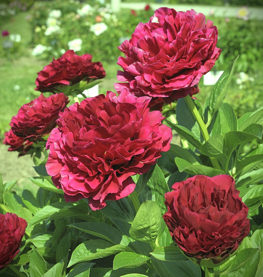 Саженец пиона Ole Faithful (Олд Фейтфул) Часто описываемый как самый царственный из красных пионов, этот многократный лауреат премии. Махровые крупные, бархатистые цветы, насыщенно-красного цвета, идеальные, круглые с необычайно толстыми лепестками. Великолепные бутоны, по форме напоминающие розу. Желтые тычинки иногда пробиваются сквозь плотные ряды лепестков, особенно у молодых растений, но реже встречаются у зрелых и хорошо выросших экземпляров. Цветы растут на одних из самых крепких стеблей, которые можно увидеть у пионов, образующих очень прямостоячую форму, и это трудно переоценить. Широкие темно-зеленые листочки делают листву особенно привлекательной. Old Faithful демонстрирует эффектное увядание, когда цветы переходят от оттенков -бархатисто-красного к мягкому вишнево-розовому цвету. Превосходные качества срезанных цветов. Цветет исключительно поздно для травянистого гибрида. Просто один из лучших пионов, которые вы можете вырастить. Лучше освободите немного места! Потому что это зрелище стоит созерцать от начала и до конца.Характерные особенности растения: