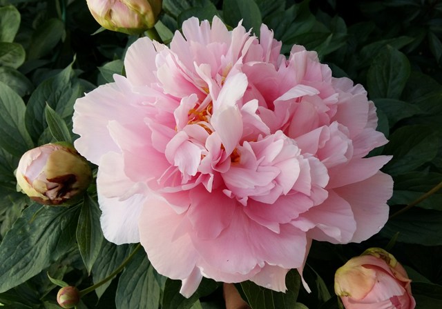 Пион травянистый "Пичес энд Крим" - это изысканное растение с нежными цветами, которые напоминают перламутрово-розовые нижние лепестки и кремовые верхние. Этот сорт пиона порадует вас своими прекрасными цветами в начале лета. Растение достигает высоты до 60 см, имеет прочный ствол и красивую форму листьев.