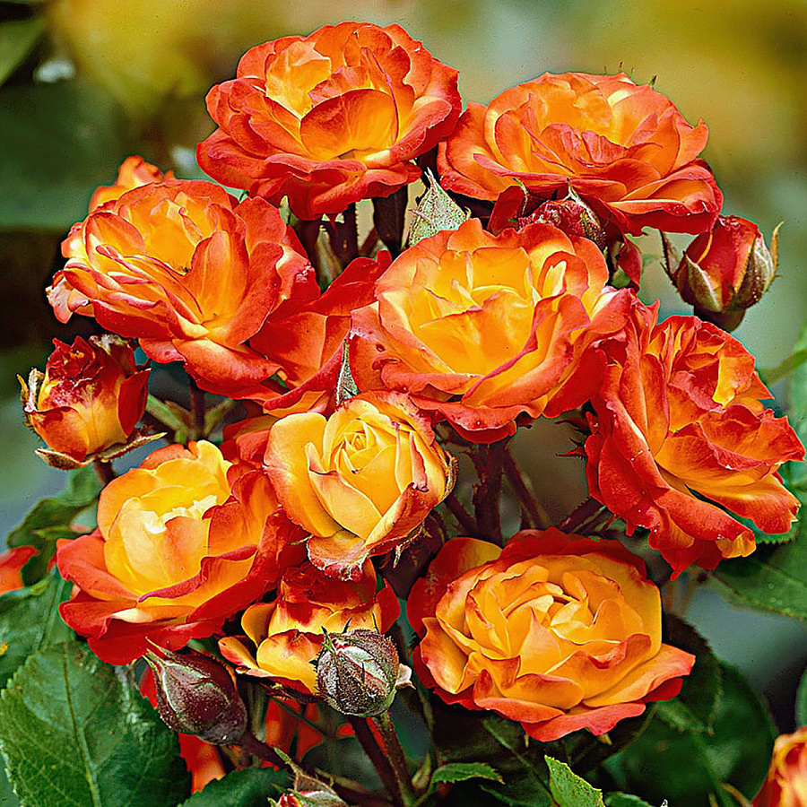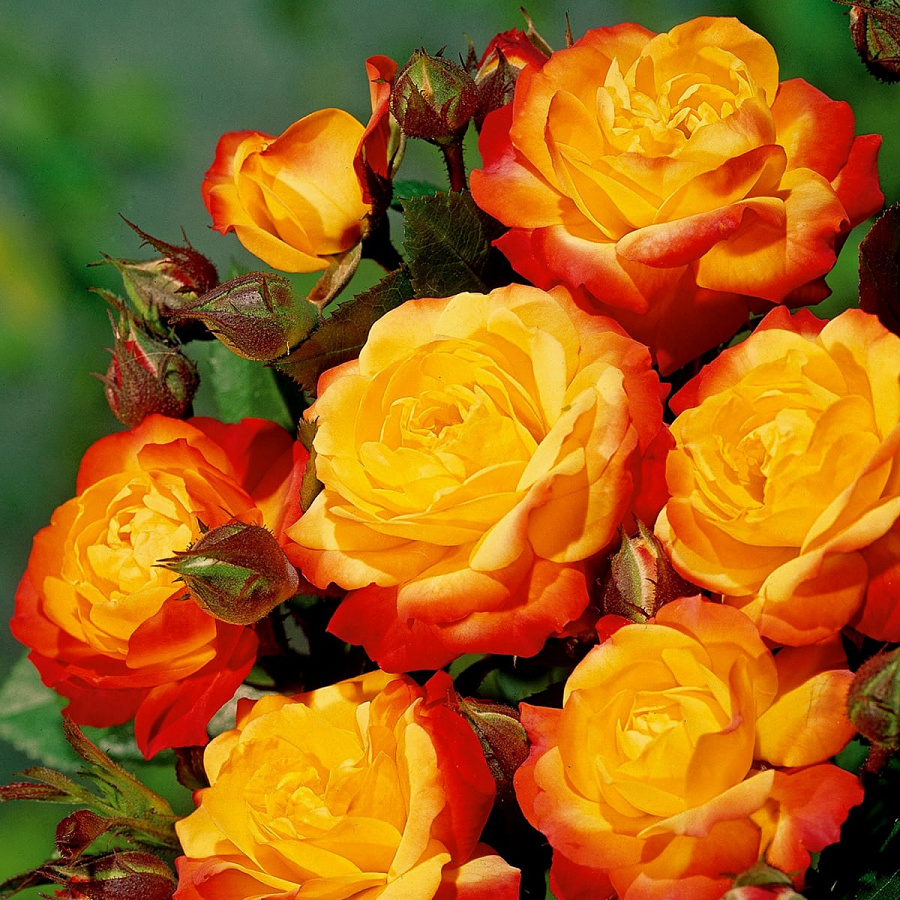 Саженцы розы сорта Румба (Rumba) хорошо приживаются на бедной почве, даря садоводам возможность получить красивые двухцветные цветы, подходящие для срезания. Отцветая, лепестки не опадают, поэтому увядшие бутоны необходимо срезать, чтобы они не снижали эстетичность куста. Особенности крупномера розы Румба: высота – до 50 см; ширина – около 50 см; диаметр цветов – 6-7 см; цвет лепестков – желтый с красным краем. Во время цветения саженцы розы Румба выпускают стебли, на которых распускается от 3 до 15 цветков. Растение хорошо переносит дожди и при должном уходе не подвергается заболеваниям.