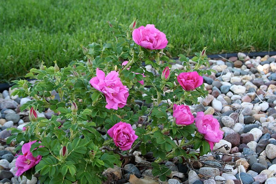 Саженцы розы канадской парковой Чарльз Альбанель (Charles Albanel) привлекают садоводов своей неприхотливостью, высоким иммунитетом и ярким цветением. Чрезвычайно колючие кусты могут выступать в роли живой изгороди, одновременно радуя взгляд малиново-розовыми цветками летом и оранжево-красными плодами осенью.