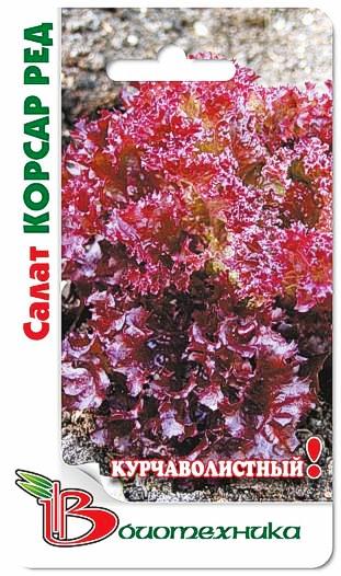 Семена салата "Корсар Ред" (Korsar Red) принадлежат к среднеспелому сорту. Период от массовых всходов до начала уборки урожая составляет 75-78 дней. А если выращивать культуру рассадным способом, то он сокращается до 45-48 дней. Розетка листьев имеет приподнятый вид. В высоту она достигает 15-16 см, а в диаметре – 25-30 см. Листья цельной формы, сильногофрированные, с бахромчатыми краями. Они плотные и хрустящие. Обладают высокими вкусовыми качествами. Сорт устойчив к цветушности, осадкам и практически не поражается слизнями и улитками. Используется в свежем виде.