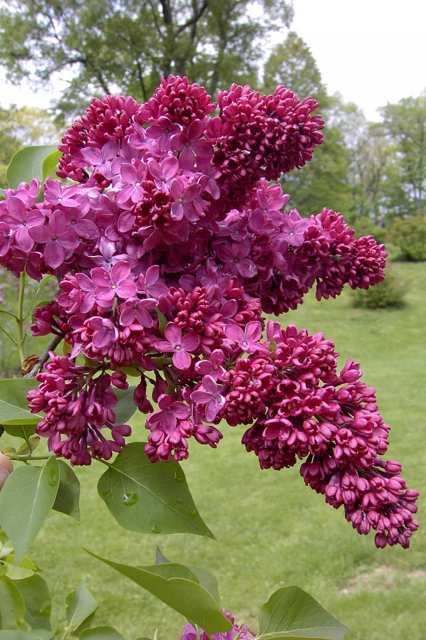 Саженцы Сирени обыкновенной Конго (Congo, Syringa vulgaris) кустарник, который источает роскошь. Тёмно-лиловые бутоны контрастируют на фоне нежно-фиолетовых распустившихся лепестков. Цветы собираются в грозди, они настолько большие, что кончики не выдерживая вес – поникают. Этот сорт имеет нежный и необыкновенного аромат, напоминающий смесь миндаля и мёда. Высота раскидистой сирени Конго не превышает 400 сантиметров. Сорт можно назвать фаворитом, ведь он пышет здоровьем. Ему не страшна продолжительная жара и холодные зимы. Лучше всего посадить этот куст на солнечной площадке, где нет сильных сквозняков. Весной стоит подумать о подкормке, так бутоны станут ещё больше.