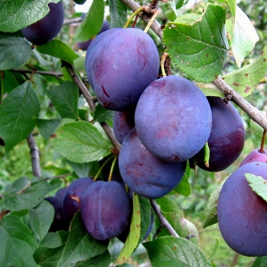 Саженцы сливы Ночка полностью оправдывают своё название: на 4-5 год после посадки вы получите чёрно-бордовые плоды с восковым налётом и тёмно-жёлтой мякотью. Употреблять их лучше в свежем виде, т.к. они обладают плохой транспортабельностью и могут храниться только 7-12 дней. Крупномеры быстро привыкнут к новой земле и могут разрастись до 4 м в высоту.