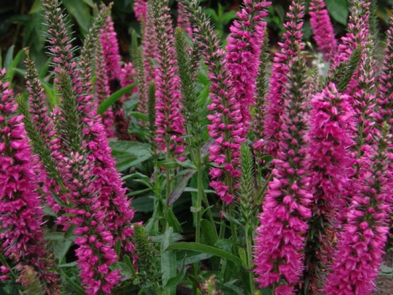 Рассада вероники (змеиной травы) колосистой Heidekind лучше всего разрастается на хорошо освещенных или полузатененных участках с рыхлой почвой. Тип грунта подходит любой. Растение неприхотливо в уходе. Используется для оформления смешанных цветников, каменистых садов, групповых посадок. Также вероника колосистая Heidekind подходит для выращивания в контейнерах. Высота растения около 50-60 см. Побеги прямостоячие, покрыты яйцевидными листьями. Соцветия до 20-25 сантиметров длиной. Представлены многочисленными меленькими цветочками яркого розового оттенка.